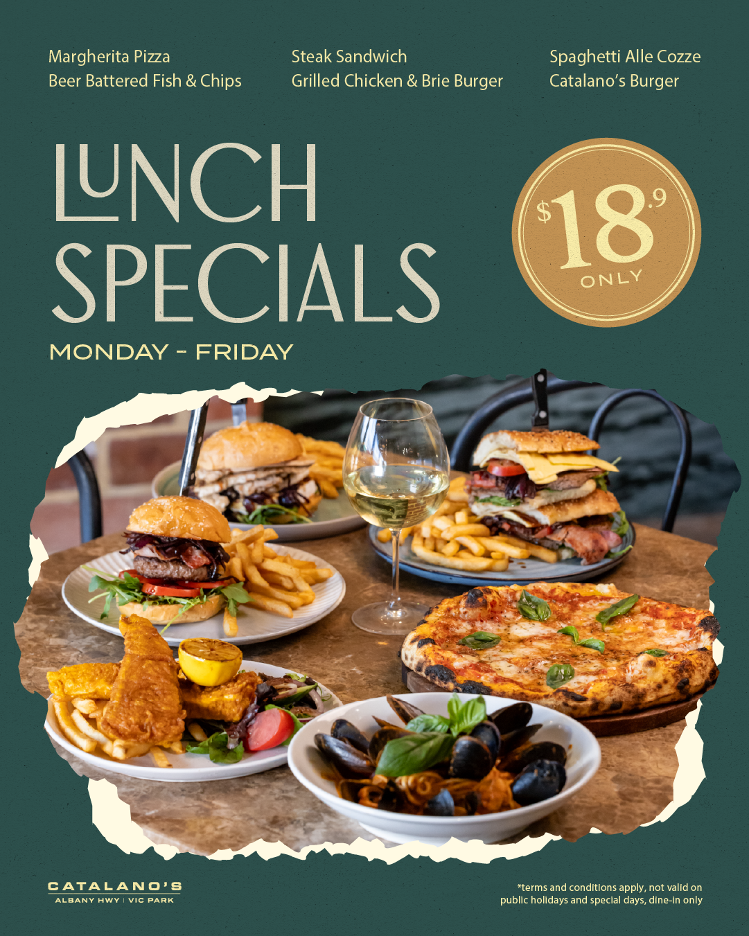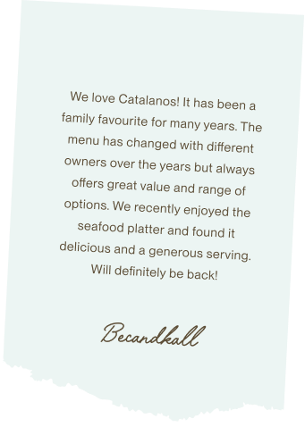 The easiest way to book a table is to book online, otherwise you may contact Catalano’s Cafe directly on +61 8 9362 1121. We are fully licenced and have a wide range of Wine, Beer and Spirits including Cocktails to choose from at reasonable prices. Find us on the Entertainment Book, Google, UBER, Deliveroo or range food sites, plus Gift Vouchers can be purchased for your family or friends to share the Catalano’s Cafe experience.